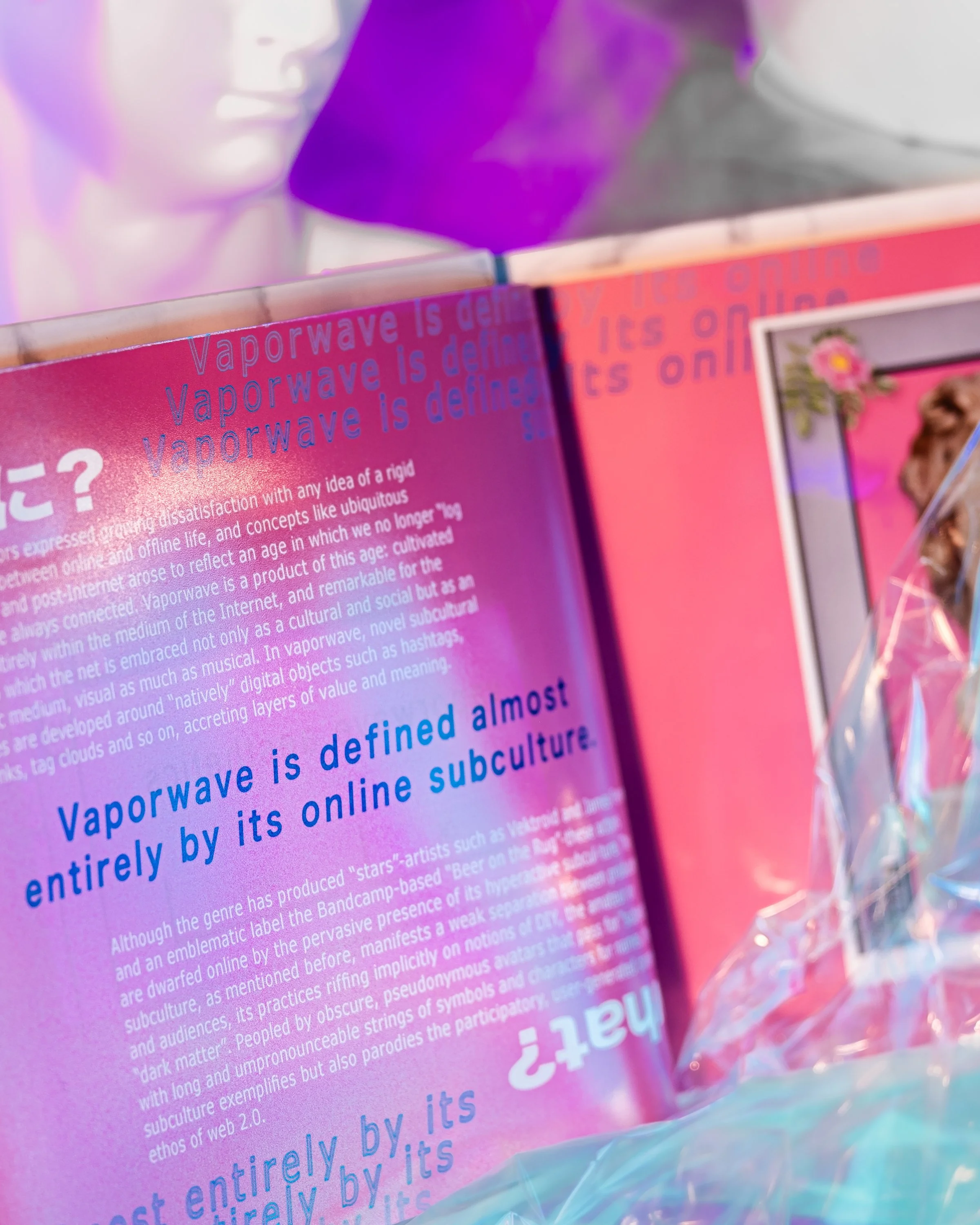 Vaporwave is a subculture rooted in the internet. By manifesting its aesthetics in a physical form, this book breaches the dimensional limit of a culture born online and allows it to reach new audiences.